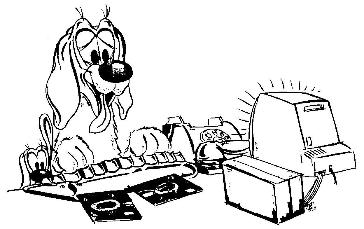 | Cartoon of Dog Dialing Up BBS Via Modem